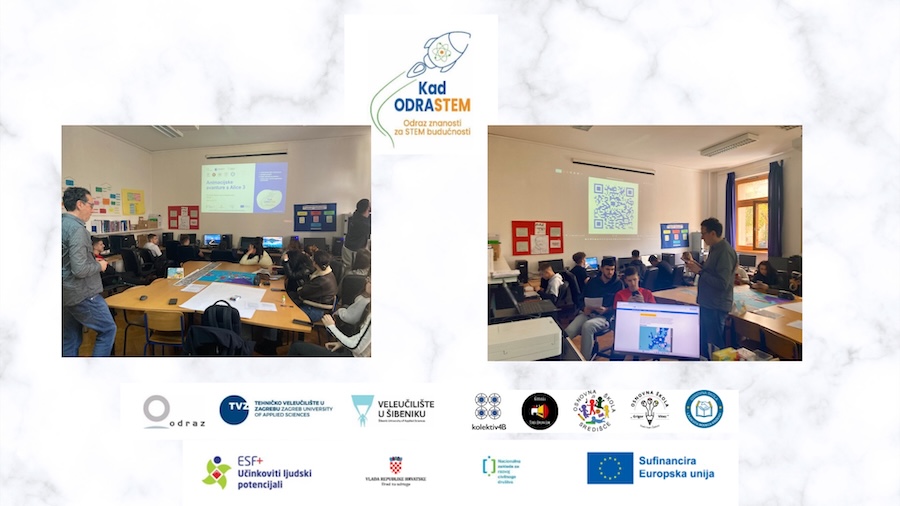 U sklopu projekta "Kad ODRASTEM – Odraz znanosti za STEM budućnosti", učenici 2. G razreda ekonomista Srednje škole Ivana Meštrovića Drniš sudjelovali su u edukativnoj radionici "Animacijske avanture s Alice 3" koju je održao prodekan za nastavu Veleučilišta u Šibeniku, Frane Urem.