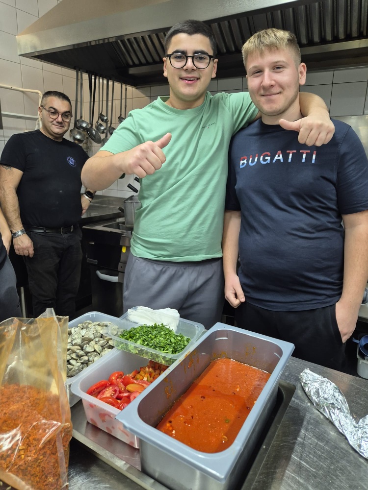 Strukovno usavršavanje u stvarnim uvjetima rada odvijalo se u restoranu „Profumi di mare“ uz mentorstvo vlasnika restorana gosp. Giania. Učenici su ručno izrađivali više vrsta tjestenina, pripremali su jela s plodovima mora i poslužili jela na svečanom stolu, te degustirali rezultate svog rada. Cilj ove aktivnosti je u potpunosti ostvaren, a iskustvo je inspirativno utjecalo na učenike.