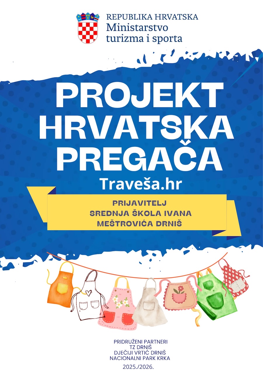 Prijavljeni projekt naše Srednje škole Ivana Meštrovića Drniš pod nazivom "Hrvatska pregača – Traveša.hr" autorice nastavnice Martine Jerkovć univ.spec.oec., dobio je odobrena sredstva! Projekt će se provoditi u školskoj godini s našim srednjoškolcima, s naglaskom na jačanju njihovih kompetencija.