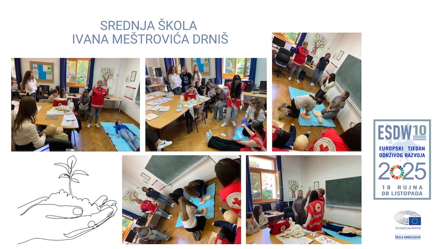 Naša škola obilježila je ovaj važan tjedan kroz suradnju s Gradskim društvom Crvenog križa Drniš. Predstavnice Crvenog križa gospođe Vinka Badžim i Jugana Kravar pozvala je nastavnica Martina Jerković da održe stručno predavanje i radionicu na nastavi pod temom Zdrave navike i prva pomoć učenje s Crvenim križem u sklopu modula Daktilografija u uredskom poslovanju za učenice prvog razreda smjera Referent za poslovnu ekonomiju. U radionici su sudjelovale učenice: Marija Bakmaz, Lana Baran, Marija Baran, Lana Čulina, Katarina Dereta, Nika Goreta, Marta Jakovljević, Anita Kulušić, Marija Lukavac, Ana Paklar, Tina Strunje, Karmen Sučić, Ani Nikol Šantić i Marijana Šutić. Tijekom radionice učenice su imale priliku naučiti: