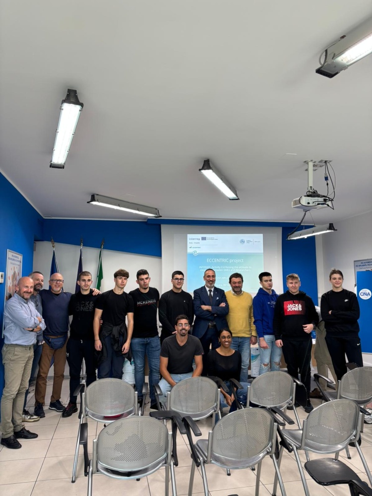 U Nacionalnoj konfederaciji za obrtništvo, te malo i srednje poduzetništvo CNA – Abruzzo, učenici su predstavili svoju školu i grad Drniš. Domaćini su nam prezentirali mogućnosti zapošljavanja u turizmu regije Abruzzo, utjecaju gospodarske aktivnosti regije na rezultate gospodarstva Italije, te su prezentirali učenicima projekte suradnje s gospodarstvenicima Republike Hrvatske.