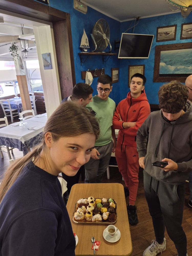 U nedjelju, 26.10.2025. učenici 3.f i 2.f razreda, smjer Konobar, započeli su putovanje na strukovno usavršavanje u Italiji. Erasmus+ mobility „Giro del gastro Italiano“ započeo je uzbudljivim putovanjem trajektom Jadrolinije iz Splita prema Anconi. U atraktivnoj i uzbudljivoj noćnoj plovidbi s trajektom Marko Polo, sudionici projekta stigli su u ranim jutarnjim satima u luku Ancona. Plan mobilnog putovanja je uključivao i putovanje vlakom u gradove Pescaru i Termoli. Koristeći javni prijevoz, učenici su naučili kako putovati i koristiti se Google alatima u pronalaženju lokacija. Za vrijeme putovanja učenici su implementirali znanja iz pripremnih sati u školi o destinaciji, pretraživali ulice i lokacije javnog prijevoza.
